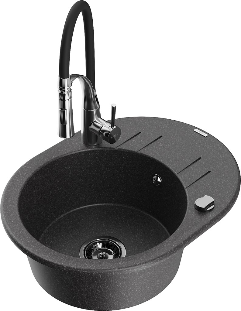 Technické dáta: drez: Rozmer: 586 x 458 x 190 mm Hĺbka komory: 180 mm Šírka komory: 378x374 mm Priemer odtoku: ø90 mm Typ: 1-miska s krátkym odkvapkávačom Typ: Zapustené do pracovnej dosky Farba: Škvrnitá čierna Povrchová úprava sifónu: čierna Materiál: žula (80% žulové kamenivo, 20% živice) Prepadový otvor: Áno Otvory: (batérie, automatické) 2 Inštalácia: Univerzálna, je možné inštalovať s odkvapkávačom na ľavú alebo pravú stranu Vysoká odolnosť proti poškriabaniu a zmene farby Odolnosť proti tepelným šokom Ľahko čistiteľný povrch Dva dodatočné vyfrézované otvory na samodierovanie ø35 kuchynská batéria: Materiál: mosadz Farba: chróm/čierna Hlava: Keramická Prevzdušňovač: Áno Typ: Jedna páka Výška batérie: 430 mm Rozsah výtoku: 185 mm Batéria má výsuvný výtok(GT) Ean: 5905315048714