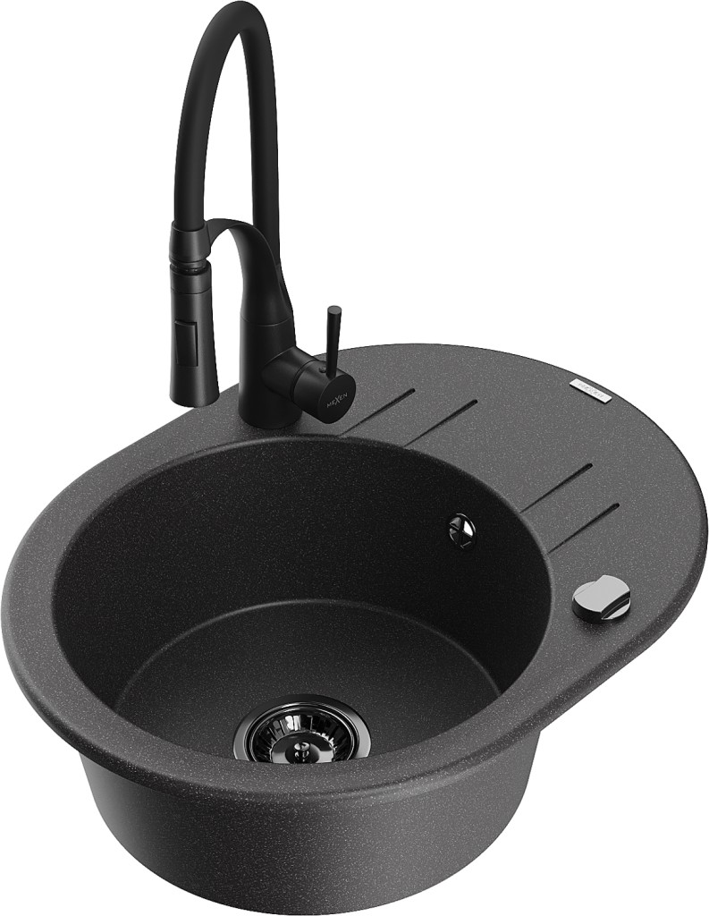 Technické dáta: drez: Rozmer: 586 x 458 x 190 mm Hĺbka komory: 180 mm Šírka komory: 378x374 mm Priemer odtoku: ø90 mm Typ: 1-miska s krátkym odkvapkávačom Typ: Zapustené do pracovnej dosky Farba: Škvrnitá čierna Povrchová úprava sifónu: čierna Materiál: žula (80% žulové kamenivo, 20% živice) Prepadový otvor: Áno Otvory: (batérie, automatické) 2 Inštalácia: Univerzálna, je možné inštalovať s odkvapkávačom na ľavú alebo pravú stranu Vysoká odolnosť proti poškriabaniu a zmene farby Odolnosť proti tepelným šokom Ľahko čistiteľný povrch Dva dodatočné vyfrézované otvory na samodierovanie ø35 kuchynská batéria: Materiál: mosadz Čierna farba Hlava: Keramická Prevzdušňovač: Áno Typ: Jedna páka Výška batérie: 430 mm Rozsah výtoku: 185 mm Batéria má výsuvný výtok(GT) Ean: 5905315048745