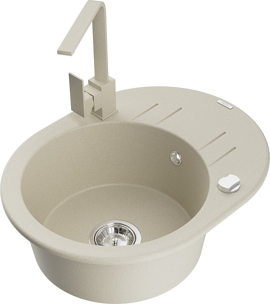Technické dáta: drez: Rozmer: 586 x 458 x 190 mm Hĺbka komory: 180 mm Šírka komory: 378x374 mm Priemer odtoku: ø90 mm Typ: 1-miska s krátkym odkvapkávačom Typ: Zapustené do pracovnej dosky Farba béžová Povrchová úprava sifónu: Chrome Materiál: žula (80% žulové kamenivo, 20% živice) Prepadový otvor: Áno Otvory: (batérie, automatické) 2 Inštalácia: Univerzálna, je možné inštalovať s odkvapkávačom na ľavú alebo pravú stranu Vysoká odolnosť proti poškriabaniu a zmene farby Odolnosť proti tepelným šokom Ľahko čistiteľný povrch Jeden dodatočný vyfrézovaný otvor na samodierovanie ø35 kuchynská batéria: Materiál: mosadz Farba béžová Hlava: Keramická Prevzdušňovač: Áno Typ: Jedna páka Výška batérie: 290 mm Rozsah výtoku: 220 mm(GT) Ean: 5905315021427