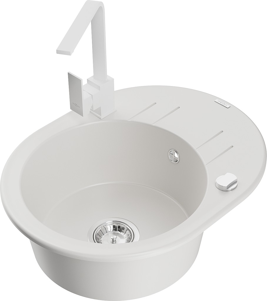 Technické dáta: drez: Rozmer: 586 x 458 x 190 mm Hĺbka komory: 180 mm Šírka komory: 378x374 mm Priemer odtoku: ø90 mm Typ: 1-miska s krátkym odkvapkávačom Typ: Zapustené do pracovnej dosky biela farba Povrchová úprava sifónu: Chrome Materiál: žula (80% žulové kamenivo, 20% živice) Prepadový otvor: Áno Otvory: (batérie, automatické) 2 Inštalácia: Univerzálna, je možné inštalovať s odkvapkávačom na ľavú alebo pravú stranu Vysoká odolnosť proti poškriabaniu a zmene farby Odolnosť proti tepelným šokom Ľahko čistiteľný povrch Jeden dodatočný vyfrézovaný otvor na samodierovanie ø35 kuchynská batéria: Materiál: mosadz biela farba Hlava: Keramická Prevzdušňovač: Áno Typ: Jedna páka Výška batérie: 290 mm Rozsah výtoku: 220 mm(GT) Ean: 5905315021380