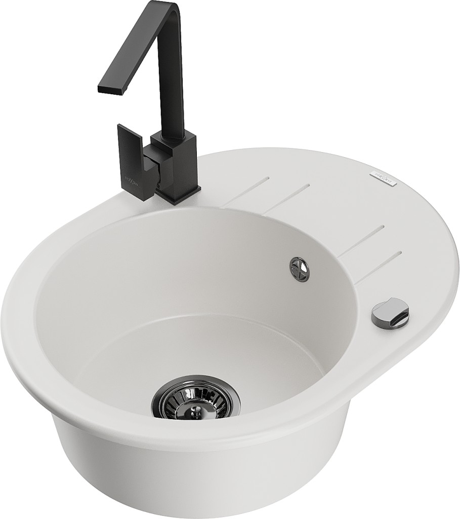 Technické dáta: drez: Rozmer: 586 x 458 x 190 mm Hĺbka komory: 180 mm Šírka komory: 378x374 mm Priemer odtoku: ø90 mm Typ: 1-miska s krátkym odkvapkávačom Typ: Zapustené do pracovnej dosky biela farba Povrchová úprava sifónu: čierna Materiál: žula (80% žulové kamenivo, 20% živice) Prepadový otvor: Áno Otvory: (batérie, automatické) 2 Inštalácia: Univerzálna, je možné inštalovať s odkvapkávačom na ľavú alebo pravú stranu Vysoká odolnosť proti poškriabaniu a zmene farby Odolnosť proti tepelným šokom Ľahko čistiteľný povrch Jeden dodatočný vyfrézovaný otvor na samodierovanie ø35 kuchynská batéria: Materiál: mosadz Čierna farba Hlava: Keramická Prevzdušňovač: Áno Typ: Jedna páka Výška batérie: 290 mm Rozsah výtoku: 220 mm(GT) Ean: 5905315021403