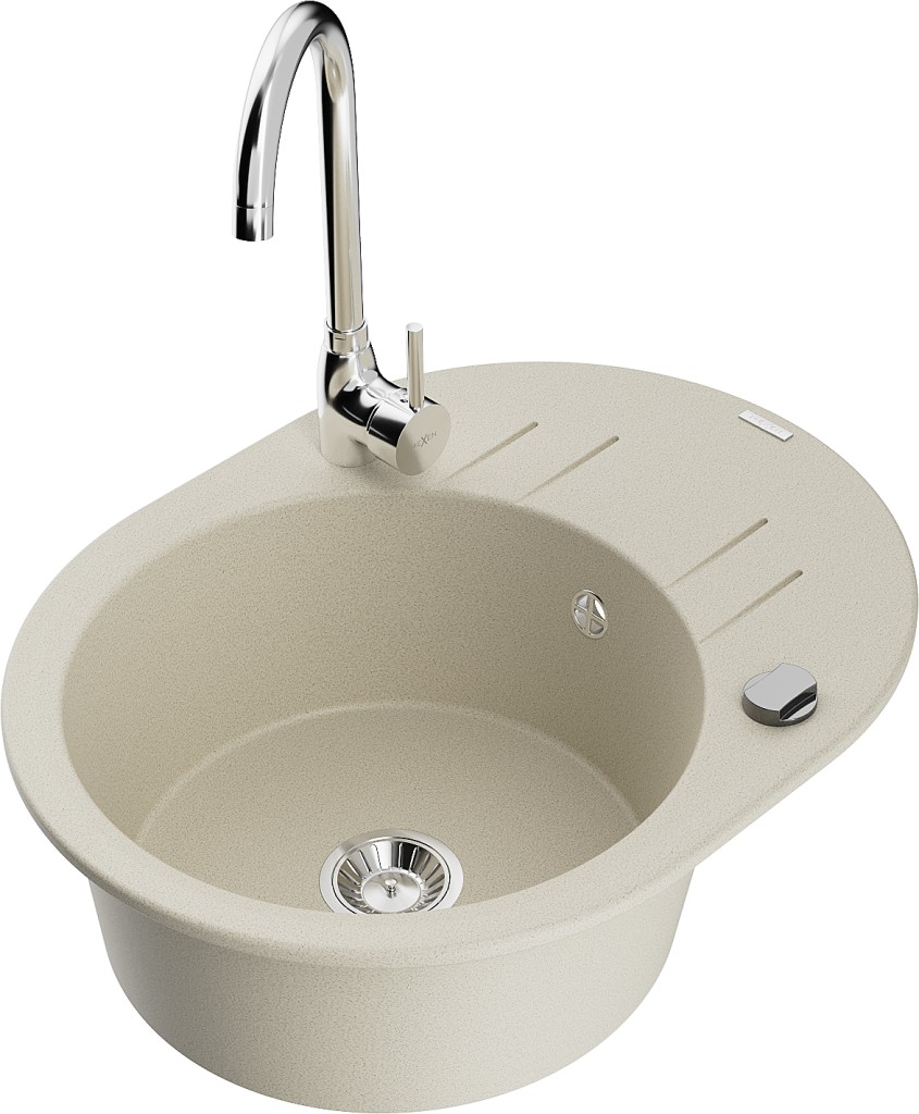 Technické dáta: drez: Rozmer: 586 x 458 x 190 mm Hĺbka komory: 180 mm Šírka komory: 378x374 mm Priemer odtoku: ø90 mm Typ: 1-miska s krátkym odkvapkávačom Typ: Zapustené do pracovnej dosky Farba béžová Povrchová úprava sifónu: Chrome Materiál: žula (80% žulové kamenivo, 20% živice) Prepadový otvor: Áno Otvory: (batérie, automatické) 2 Inštalácia: Univerzálna, je možné inštalovať s odkvapkávačom na ľavú alebo pravú stranu Vysoká odolnosť proti poškriabaniu a zmene farby Odolnosť proti tepelným šokom Ľahko čistiteľný povrch Jeden dodatočný vyfrézovaný otvor na samodierovanie ø35 kuchynská batéria: Materiál: mosadz Farba: Chrome Hlava: Keramická Prevzdušňovač: Áno Typ: Jedna páka Výška batérie: 335 mm Rozsah výtoku: 180 mm(GT) Ean: 5905315016294