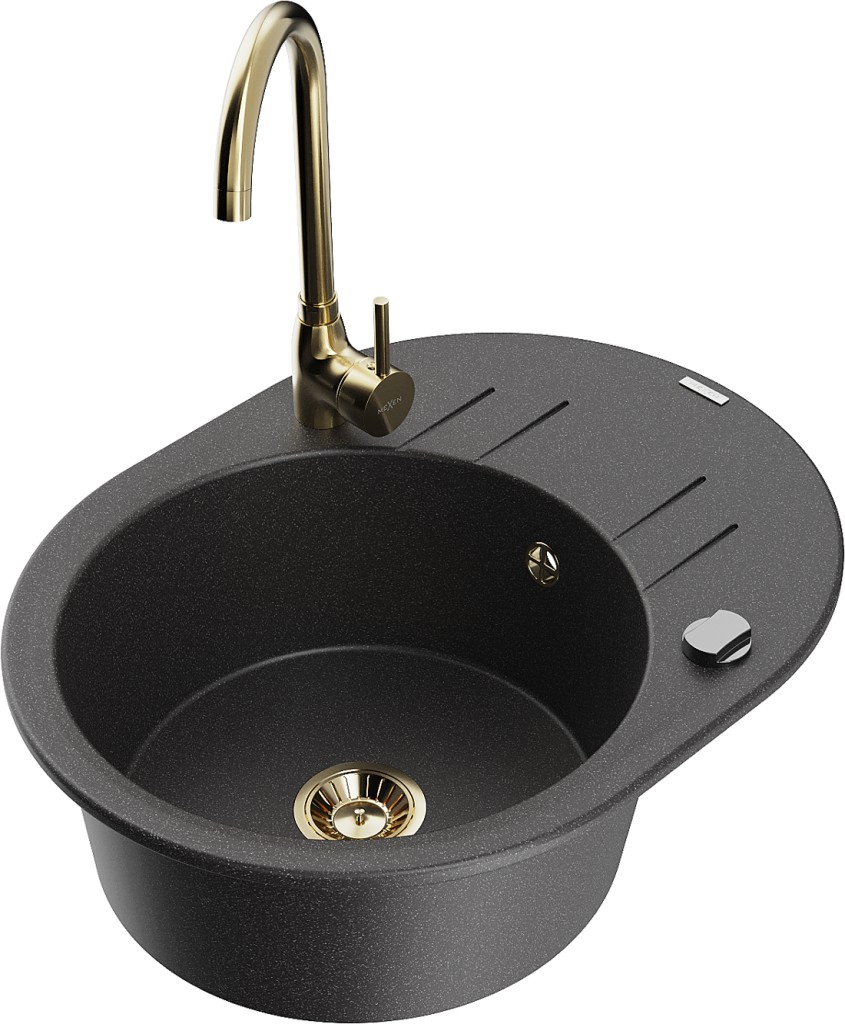 Technické dáta: drez: Rozmer: 586 x 458 x 190 mm Hĺbka komory: 180 mm Šírka komory: 378x374 mm Priemer odtoku: ø90 mm Typ: 1-miska s krátkym odkvapkávačom Typ: Zapustené do pracovnej dosky Farba: Škvrnitá čierna Povrchová úprava sifónu: zlatá Materiál: žula (80% žulové kamenivo, 20% živice) Prepadový otvor: Áno Otvory: (batérie, automatické) 2 Inštalácia: Univerzálna, je možné inštalovať s odkvapkávačom na ľavú alebo pravú stranu Vysoká odolnosť proti poškriabaniu a zmene farby Odolnosť proti tepelným šokom Ľahko čistiteľný povrch Jeden dodatočný vyfrézovaný otvor na samodierovanie ø35 kuchynská batéria: Materiál: mosadz Farba: Zlatá Hlava: Keramická Prevzdušňovač: Áno Typ: Jedna páka Výška batérie: 335 mm Rozsah výtoku: 180 mm(GT) Ean: 5905315016485