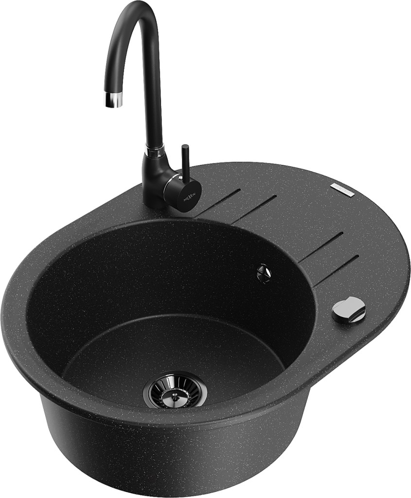 Technické dáta: drez: Rozmer: 586 x 458 x 190 mm Hĺbka komory: 180 mm Šírka komory: 378x374 mm Priemer odtoku: ø90 mm Typ: 1-miska s krátkym odkvapkávačom Typ: Zapustené do pracovnej dosky Farba: čierna/strieborná metalíza Povrchová úprava sifónu: čierna Materiál: žula (80% žulové kamenivo, 20% živice) Prepadový otvor: Áno Otvory: (batérie, automatické) 2 Inštalácia: Univerzálna, je možné inštalovať s odkvapkávačom na ľavú alebo pravú stranu Vysoká odolnosť proti poškriabaniu a zmene farby Odolnosť proti tepelným šokom Ľahko čistiteľný povrch Jeden dodatočný vyfrézovaný otvor na samodierovanie ø35 kuchynská batéria: Materiál: mosadz Čierna farba Hlava: Keramická Prevzdušňovač: Áno Typ: Jedna páka Výška batérie: 335 mm Rozsah výtoku: 180 mm(GT) Ean: 5905315016416