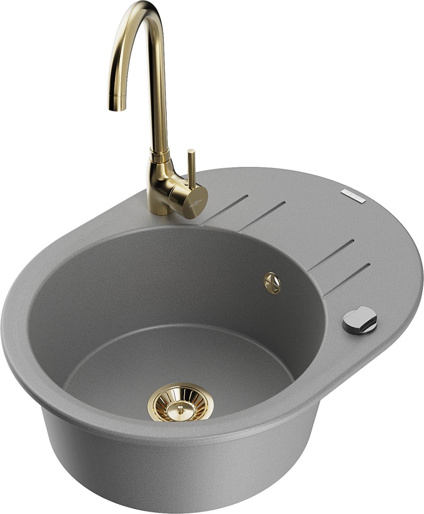 Technické dáta: drez: Rozmer: 586 x 458 x 190 mm Hĺbka komory: 180 mm Šírka komory: 378x374 mm Priemer odtoku: ø90 mm Typ: 1-miska s krátkym odkvapkávačom Typ: Zapustené do pracovnej dosky Šedá farba Povrchová úprava sifónu: zlatá Materiál: žula (80% žulové kamenivo, 20% živice) Prepadový otvor: Áno Otvory: (batérie, automatické) 2 Inštalácia: Univerzálna, je možné inštalovať s odkvapkávačom na ľavú alebo pravú stranu Vysoká odolnosť proti poškriabaniu a zmene farby Odolnosť proti tepelným šokom Ľahko čistiteľný povrch Jeden dodatočný vyfrézovaný otvor na samodierovanie ø35 kuchynská batéria: Materiál: mosadz Farba: Zlatá Hlava: Keramická Prevzdušňovač: Áno Typ: Jedna páka Výška batérie: 335 mm Rozsah výtoku: 180 mm(GT) Ean: 5905315016348