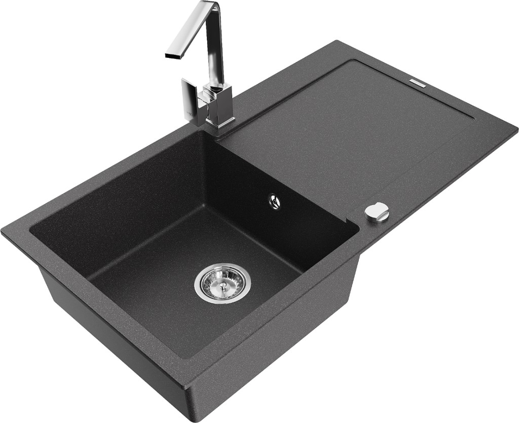 Technické dáta: drez: Rozmer: 900x500x190mm Hĺbka komory: 180 mm Rozmery komory: 430x415 mm Priemer odtoku: ø90 mm Typ: 1-miska s odkvapkávačom Typ: Zapustené do pracovnej dosky Farba: Škvrnitá čierna Povrchová úprava sifónu: Chrome Materiál: žula (80% žulové kamenivo, 20% živice) Prepadový otvor: Áno Otvory: (batérie, automatické) 2 Inštalácia: Univerzálna, je možné inštalovať s odkvapkávačom na ľavú alebo pravú stranu Vysoká odolnosť proti poškriabaniu a zmene farby Odolnosť proti tepelným šokom Ľahko čistiteľný povrch Dva dodatočné vyfrézované otvory na samodierovanie ø35 kuchynská batéria: Materiál: mosadz Farba: Chrome Hlava: Keramická Prevzdušňovač: Áno Typ: Jedna páka Výška batérie: 290 mm Rozsah výtoku: 220 mm(GT) Ean: 5905315017116