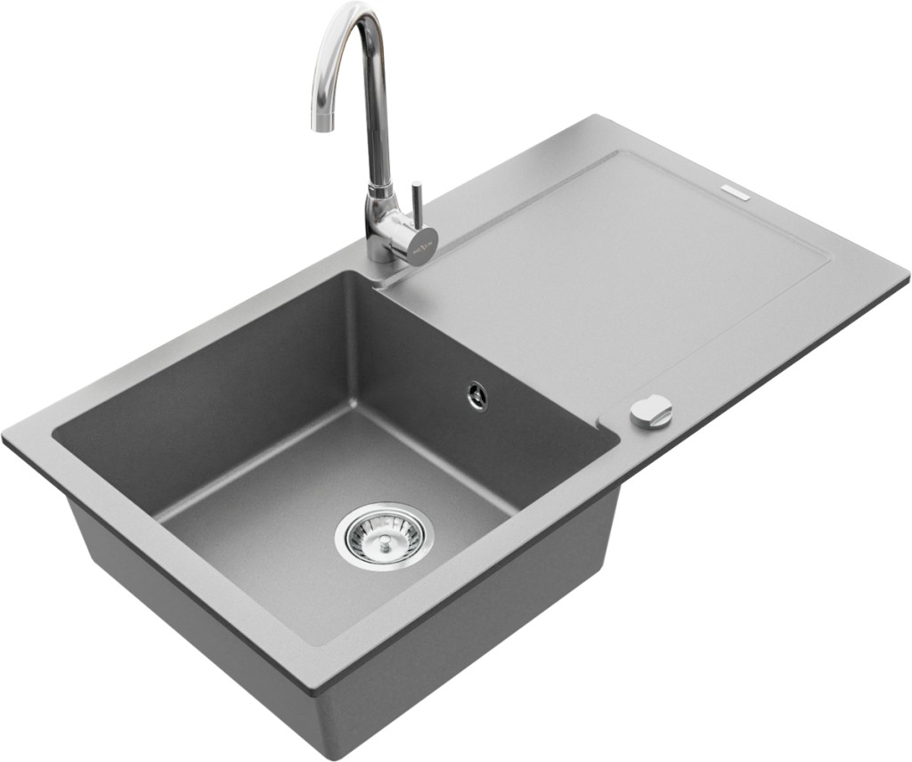 Technické dáta: drez: Rozmer: 900x500x190mm Hĺbka komory: 180 mm Rozmery komory: 430x415 mm Priemer odtoku: ø90 mm Typ: 1-miska s odkvapkávačom Typ: Zapustené do pracovnej dosky Šedá farba Povrchová úprava sifónu: Chrome Materiál: žula (80% žulové kamenivo, 20% živice) Prepadový otvor: Áno Otvory: (batérie, automatické) 2 Inštalácia: Univerzálna, je možné inštalovať s odkvapkávačom na ľavú alebo pravú stranu Vysoká odolnosť proti poškriabaniu a zmene farby Odolnosť proti tepelným šokom Ľahko čistiteľný povrch Dva dodatočné vyfrézované otvory na samodierovanie ø35 kuchynská batéria: Materiál: mosadz Farba: Chrome Hlava: Keramická Prevzdušňovač: Áno Výška batérie: 335 mm Rozsah výtoku: 180 mm(GT) Ean: 5907709188990