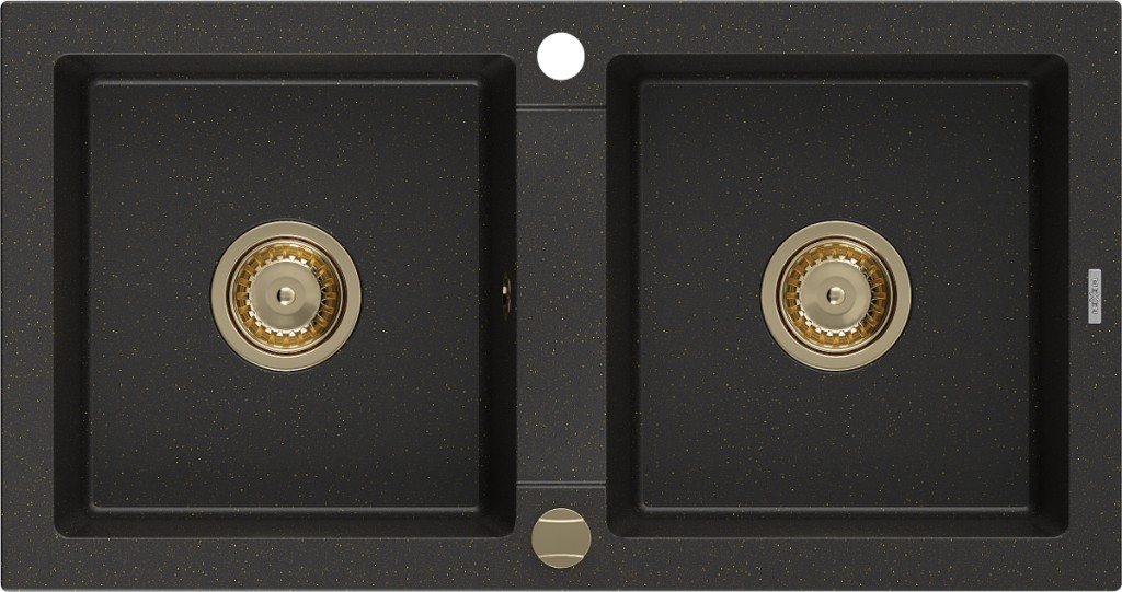 Technické dáta: Rozmer: 820 x 436 x 161 mm Hĺbka komory: 151 mm Rozmery komory: 356x336 mm Priemer odtoku: ø90 mm Typ: 2-komorový Typ: Zapustené do pracovnej dosky Materiál: žula Farba: čierna / zlatá metalíza Povrchová úprava sifónu: zlatá Prepadový otvor: Áno Otvor pre batériu: Áno Vrátane automatického sifónu Vysoká odolnosť proti poškriabaniu a zmene farby Odolnosť proti tepelným šokom Ľahko čistiteľný povrch(GT) Ean: 5905315011596
