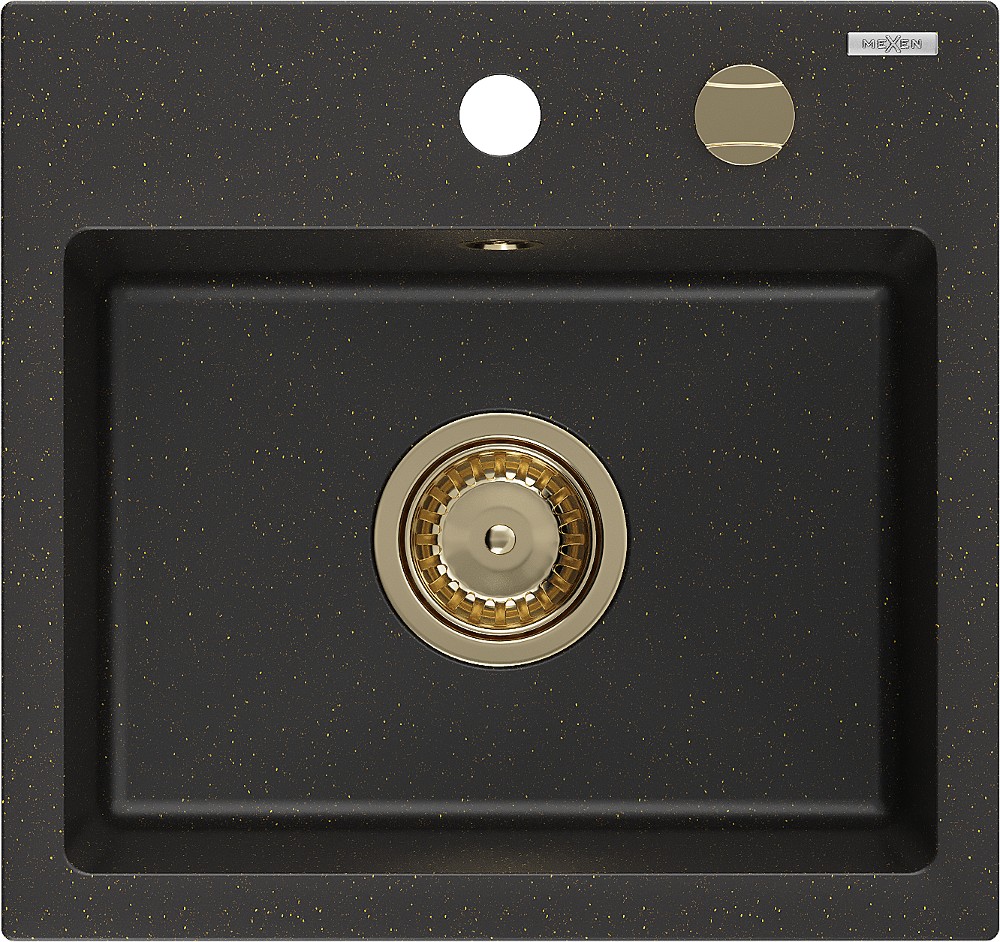 Technické dáta: Rozmer: 435x410x171mm Hĺbka komory: 161 mm Rozmery komory: 375x280 mm Priemer odtoku: ø90 mm Typ: 1-komorový Typ: Zapustené do pracovnej dosky Materiál: žula Farba: čierna / zlatá metalíza Povrchová úprava sifónu: zlatá Prepadový otvor: Áno Otvor pre batériu: Áno Vrátane automatického sifónu Vysoká odolnosť proti poškriabaniu a zmene farby Odolnosť proti tepelným šokom Ľahko čistiteľný povrch Jeden dodatočný vyfrézovaný otvor na samodierovanie ø35(GT) Ean: 5905315011664