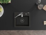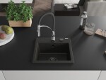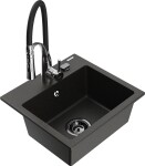 Technické dáta: drez: Rozmer: 435x410x171mm Hĺbka komory: 161 mm Rozmery komory: 375x280 mm Priemer odtoku: ø90 mm Typ: 1-komorový Typ: Zapustené do pracovnej dosky Farba: čierna / zlatá metalíza Povrchová úprava sifónu: čierna Materiál: žula (80% žulové kamenivo, 20% živice) Prepadový otvor: Áno Otvory: (batérie, automatické) 2 Vysoká odolnosť proti poškriabaniu a zmene farby Odolnosť proti tepelným šokom Ľahko čistiteľný povrch Jeden dodatočný vyfrézovaný otvor na samodierovanie ø35 kuchynská batéria: Materiál: mosadz Farba: chróm/čierna Hlava: Keramická Prevzdušňovač: Áno Typ: Jedna páka Výška batérie: 430 mm Rozsah výtoku: 185 mm Batéria má výsuvný výtok(GT) Ean: 5905315044457