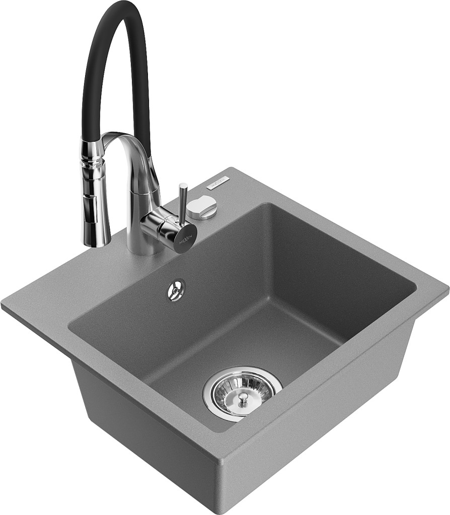 Technické dáta: drez: Rozmer: 435x410x171mm Hĺbka komory: 161 mm Rozmery komory: 375x280 mm Priemer odtoku: ø90 mm Typ: 1-komorový Typ: Zapustené do pracovnej dosky Šedá farba Povrchová úprava sifónu: Chrome Materiál: žula (80% žulové kamenivo, 20% živice) Prepadový otvor: Áno Otvory: (batérie, automatické) 2 Vysoká odolnosť proti poškriabaniu a zmene farby Odolnosť proti tepelným šokom Ľahko čistiteľný povrch Jeden dodatočný vyfrézovaný otvor na samodierovanie ø35 kuchynská batéria: Materiál: mosadz Farba: chróm/čierna Hlava: Keramická Prevzdušňovač: Áno Typ: Jedna páka Výška batérie: 430 mm Rozsah výtoku: 185 mm Batéria má výsuvný výtok(GT) Ean: 5905315044327