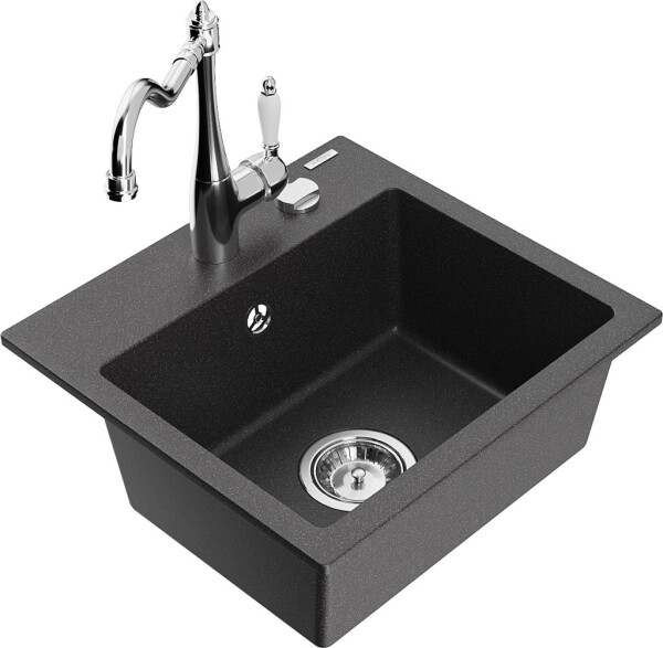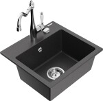 Technické dáta: drez: Rozmer: 435x410x171mm Hĺbka komory: 161 mm Rozmery komory: 375x280 mm Priemer odtoku: ø90 mm Typ: 1-komorový Typ: Zapustené do pracovnej dosky Farba: Škvrnitá čierna Povrchová úprava sifónu: Chrome Materiál: žula (80% žulové kamenivo, 20% živice) Prepadový otvor: Áno Otvory: (batérie, automatické) 2 Vysoká odolnosť proti poškriabaniu a zmene farby Odolnosť proti tepelným šokom Ľahko čistiteľný povrch Jeden dodatočný vyfrézovaný otvor na samodierovanie ø35 kuchynská batéria: Materiál: mosadz Farba: Chrome Hlava: Keramická Prevzdušňovač: Áno Typ: Jedna páka Výška batérie: 290 mm Rozsah výtoku: 260 mm(GT) Ean: 5905315038883
