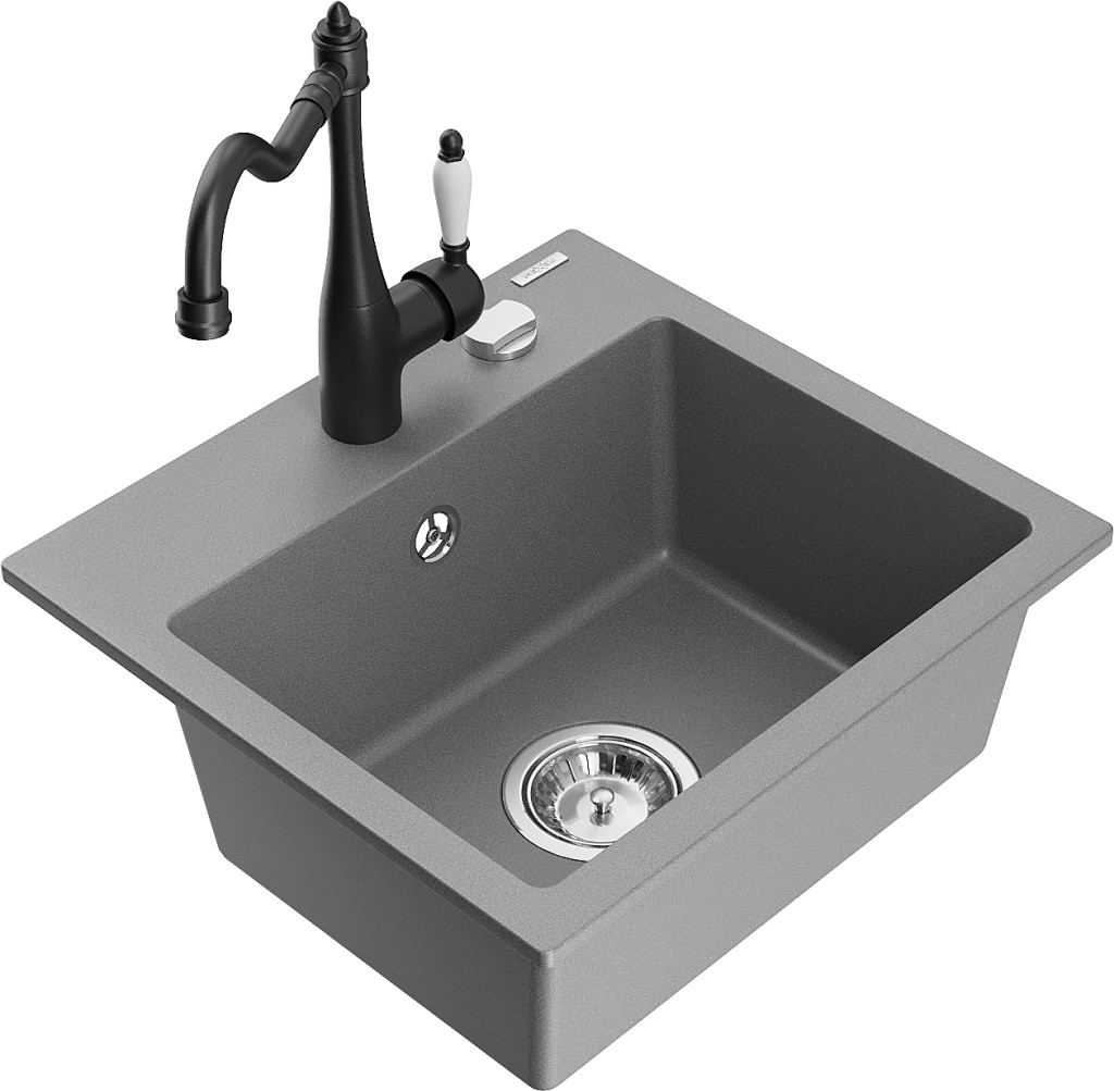 Technické dáta: drez: Rozmer: 435x410x171mm Hĺbka komory: 161 mm Rozmery komory: 375x280 mm Priemer odtoku: ø90 mm Typ: 1-komorový Typ: Zapustené do pracovnej dosky Šedá farba Povrchová úprava sifónu: Chrome Materiál: žula (80% žulové kamenivo, 20% živice) Prepadový otvor: Áno Otvory: (batérie, automatické) 2 Vysoká odolnosť proti poškriabaniu a zmene farby Odolnosť proti tepelným šokom Ľahko čistiteľný povrch Jeden dodatočný vyfrézovaný otvor na samodierovanie ø35 kuchynská batéria: Materiál: mosadz Čierna farba Hlava: Keramická Prevzdušňovač: Áno Typ: Jedna páka Výška batérie: 290 mm Rozsah výtoku: 260 mm(GT) Ean: 5905315038760