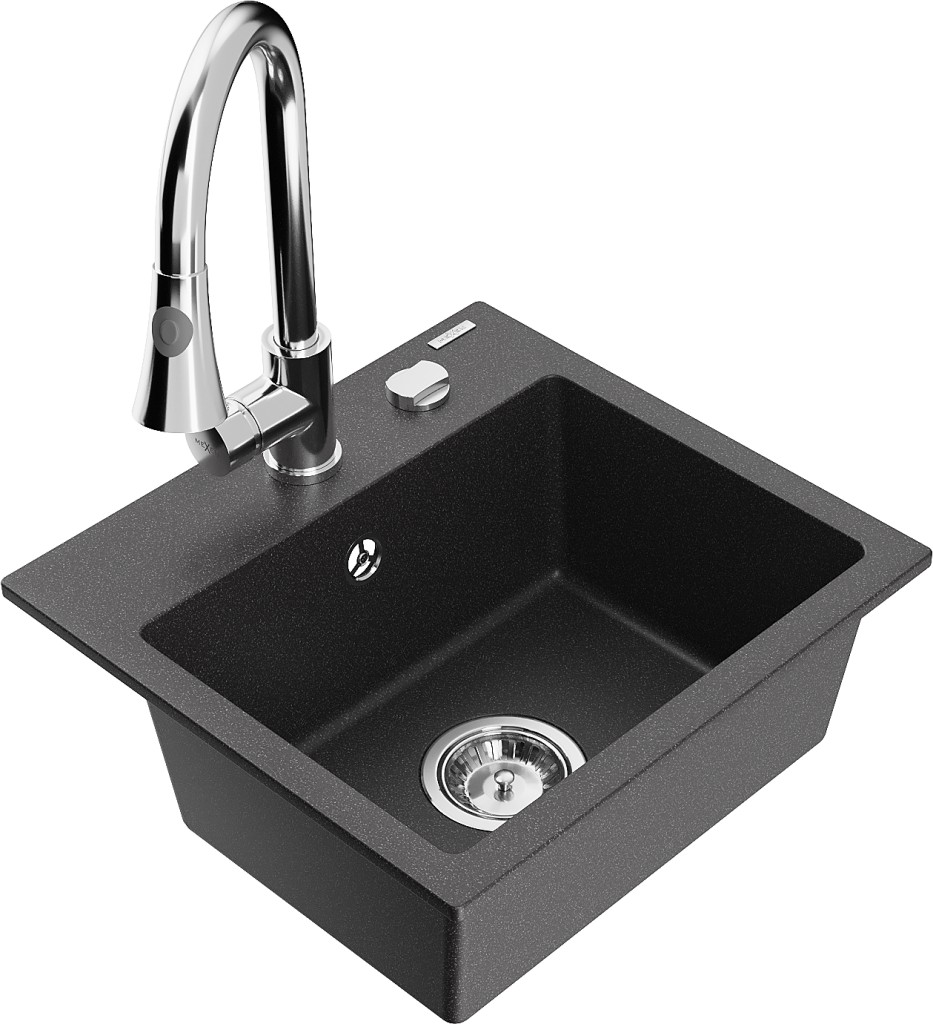 Technické dáta: drez: Rozmer: 435x410x171mm Hĺbka komory: 161 mm Rozmery komory: 375x280 mm Priemer odtoku: ø90 mm Typ: 1-komorový Typ: Zapustené do pracovnej dosky Farba: Škvrnitá čierna Povrchová úprava sifónu: Chrome Materiál: žula (80% žulové kamenivo, 20% živice) Prepadový otvor: Áno Otvory: (batérie, automatické) 2 Vysoká odolnosť proti poškriabaniu a zmene farby Odolnosť proti tepelným šokom Ľahko čistiteľný povrch Jeden dodatočný vyfrézovaný otvor na samodierovanie ø35 kuchynská batéria: Materiál: mosadz Farba: Chrome Hlava: Keramická Prevzdušňovač: Áno Typ: Jedna páka Výška batérie: 380 mm Rozsah výtoku: 252 mm Typ výtoku: Výsuvný(GT) Ean: 5905315028624