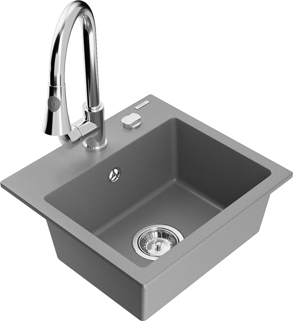 Technické dáta: drez: Rozmer: 435x410x171mm Hĺbka komory: 161 mm Rozmery komory: 375x280 mm Priemer odtoku: ø90 mm Typ: 1-komorový Typ: Zapustené do pracovnej dosky Šedá farba Povrchová úprava sifónu: Chrome Materiál: žula (80% žulové kamenivo, 20% živice) Prepadový otvor: Áno Otvory: (batérie, automatické) 2 Vysoká odolnosť proti poškriabaniu a zmene farby Odolnosť proti tepelným šokom Ľahko čistiteľný povrch Jeden dodatočný vyfrézovaný otvor na samodierovanie ø35 kuchynská batéria: Materiál: mosadz Farba: Chrome Hlava: Keramická Prevzdušňovač: Áno Typ: Jedna páka Výška batérie: 380 mm Rozsah výtoku: 252 mm Typ výtoku: Výsuvný(GT) Ean: 5905315028488