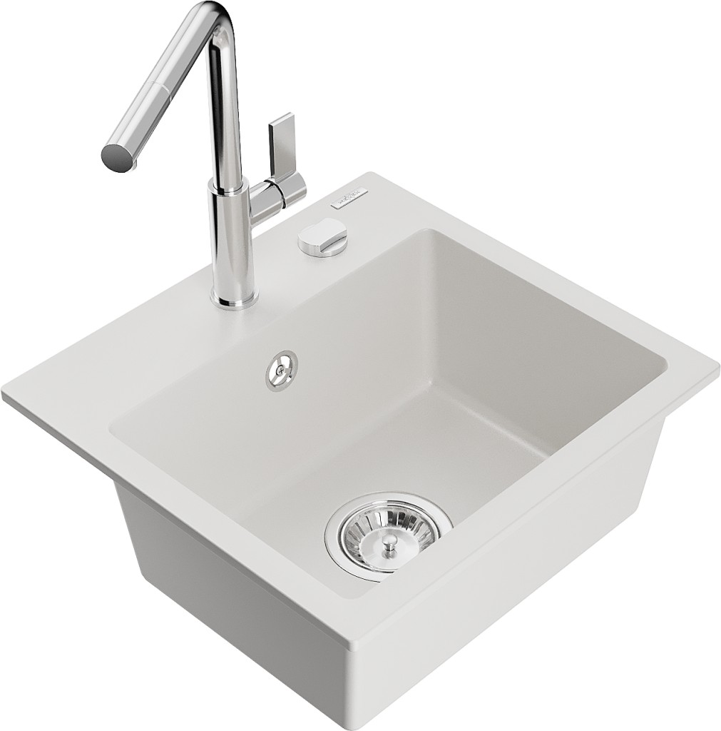 Technické dáta: drez: Rozmer: 435x410x171mm Hĺbka komory: 161 mm Rozmery komory: 375x280 mm Priemer odtoku: ø90 mm Typ: 1-komorový Typ: Zapustené do pracovnej dosky biela farba Povrchová úprava sifónu: Chrome Materiál: žula (80% žulové kamenivo, 20% živice) Prepadový otvor: Áno Otvory: (batérie, automatické) 2 Vysoká odolnosť proti poškriabaniu a zmene farby Odolnosť proti tepelným šokom Ľahko čistiteľný povrch Jeden dodatočný vyfrézovaný otvor na samodierovanie ø35 kuchynská batéria: Materiál: mosadz Farba: Chrome Hlava: Keramická Prevzdušňovač: Áno Typ: Jedna páka Rozsah výtoku: 245 mm Výška batérie: 307 mm(GT) Ean: 5905315057952