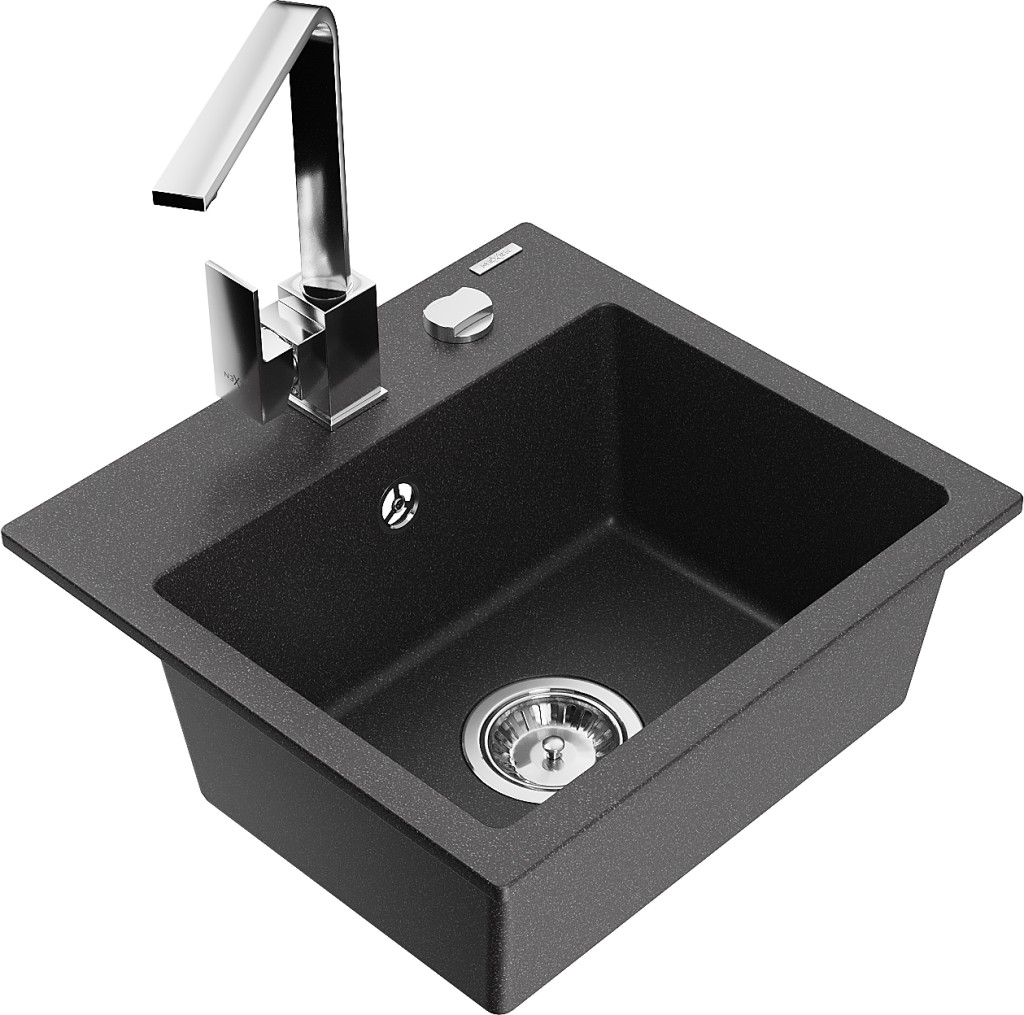 Technické dáta: drez: Rozmer: 435x410x171mm Hĺbka komory: 161 mm Rozmery komory: 375x280 mm Priemer odtoku: ø90 mm Typ: 1-komorový Typ: Zapustené do pracovnej dosky Farba: Škvrnitá čierna Povrchová úprava sifónu: Chrome Materiál: žula (80% žulové kamenivo, 20% živice) Prepadový otvor: Áno Otvory: (batérie, automatické) 2 Vysoká odolnosť proti poškriabaniu a zmene farby Odolnosť proti tepelným šokom Ľahko čistiteľný povrch Jeden dodatočný vyfrézovaný otvor na samodierovanie ø35 kuchynská batéria: Materiál: mosadz Farba: Chrome Hlava: Keramická Prevzdušňovač: Áno Typ: Jedna páka Výška batérie: 290 mm Rozsah výtoku: 220 mm(GT) Ean: 5905315018397