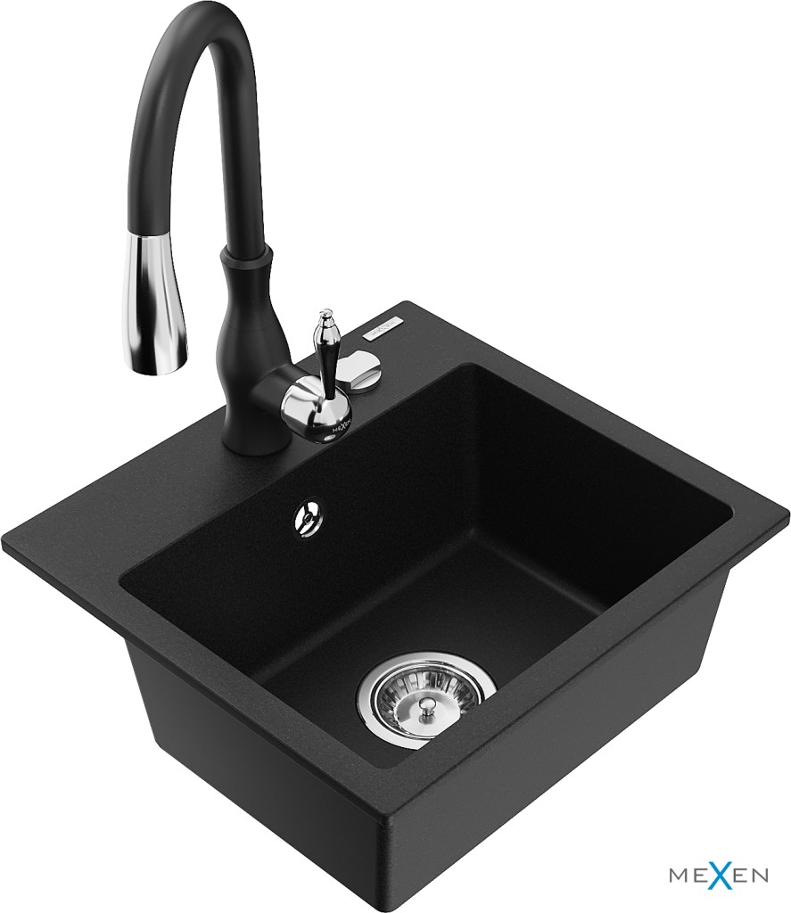 Technické dáta: drez: Rozmer: 435x410x171mm Hĺbka komory: 161 mm Rozmery komory: 375x280 mm Priemer odtoku: ø90 mm Typ: 1-komorový Typ: Zapustené do pracovnej dosky Čierna farba Povrchová úprava sifónu: Chrome Materiál: žula (80% žulové kamenivo, 20% živice) Prepadový otvor: Áno Otvory: (batérie, automatické) 2 Vysoká odolnosť proti poškriabaniu a zmene farby Odolnosť proti tepelným šokom Ľahko čistiteľný povrch Jeden dodatočný vyfrézovaný otvor na samodierovanie ø35 kuchynská batéria: Materiál: mosadz Čierna farba Hlava: Keramická Prevzdušňovač: Áno Typ: Jedna páka Výška batérie: 410 mm Rozsah výtoku: 231 mm (GT) Ean: 5905315033840
