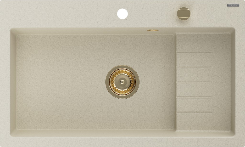 Špecifikácia produktu: Rozmer: 800x480x210 mm Hĺbka komory: 200 mm Rozmery komory: 734x357 mm Priemer odtoku: ø90 mm Typ: 1-komorový Typ: Zapustené do pracovnej dosky Materiál: žula Farba béžová Povrchová úprava sifónu: zlatá Prepadový otvor: Áno Otvor pre batériu: Áno Vrátane automatického sifónu Vysoká odolnosť proti poškriabaniu a zmene farby Odolnosť proti tepelným šokom Povrch pre ľahké čistenie Jeden dodatočný vyfrézovaný otvor na samodierovanie ø35(GT) Ean: 5905315236333