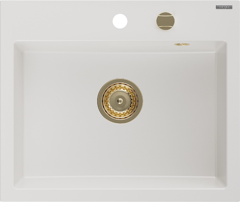 Špecifikácia produktu: Rozmer: 580x490x205 mm Hĺbka komory: 190 mm Rozmery komory: 520x364 mm Priemer odtoku: ø90 mm Typ: 1-komorový Typ: Zapustené do pracovnej dosky Materiál: žula biela farba Povrchová úprava sifónu: zlatá Prepadový otvor: Áno Otvor pre batériu: Áno Vrátane automatického sifónu Vysoká odolnosť proti poškriabaniu a zmene farby Odolnosť proti tepelným šokom Povrch pre ľahké čistenie Jeden dodatočný vyfrézovaný otvor na samodierovanie ø35 (GT) Ean: 5905315236258