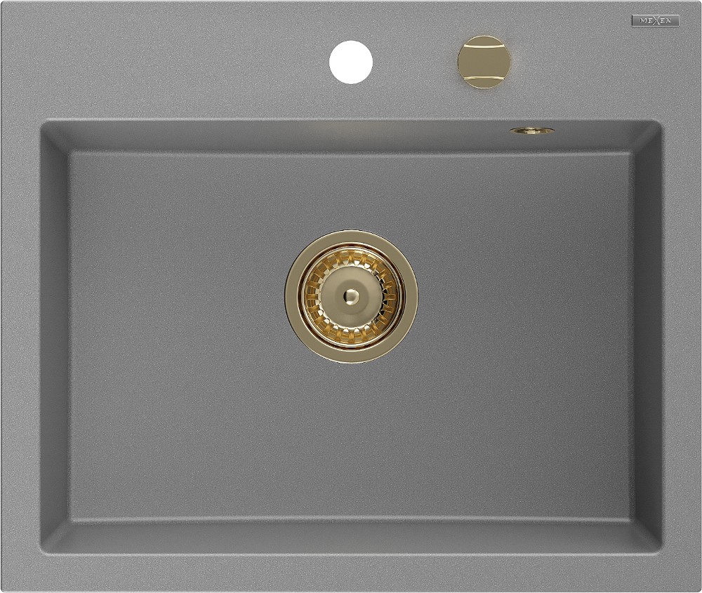Špecifikácia produktu: Rozmer: 580x490x205 mm Hĺbka komory: 190 mm Rozmery komory: 520x364 mm Priemer odtoku: ø90 mm Typ: 1-komorový Typ: Zapustené do pracovnej dosky Materiál: žula Šedá farba Povrchová úprava sifónu: zlatá Prepadový otvor: Áno Otvor pre batériu: Áno Vrátane automatického sifónu Vysoká odolnosť proti poškriabaniu a zmene farby Odolnosť proti tepelným šokom Povrch pre ľahké čistenie Jeden dodatočný vyfrézovaný otvor na samodierovanie ø35 (GT) Ean: 5905315236272