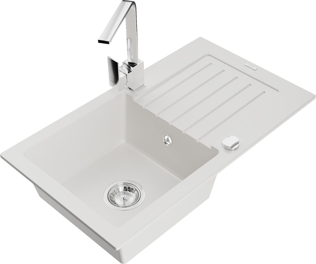 Technické dáta: drez: Rozmer: 752 x 436 x 161 mm Hĺbka komory: 151 mm Rozmery komory: 356x332 mm Priemer odtoku: ø90 mm Typ: 1-miska s odkvapkávačom Typ: Zapustené do pracovnej dosky biela farba Povrchová úprava sifónu: Chrome Materiál: žula (80% žulové kamenivo, 20% živice) Prepadový otvor: Áno Otvory: (batérie, automatické) 2 Inštalácia: Univerzálna, je možné inštalovať s odkvapkávačom na ľavú alebo pravú stranu Vysoká odolnosť proti poškriabaniu a zmene farby Odolnosť proti tepelným šokom Ľahko čistiteľný povrch Dva dodatočné vyfrézované otvory na samodierovanie ø35 kuchynská batéria: Materiál: mosadz Farba: Chrome Hlava: Keramická Prevzdušňovač: Áno Typ: Jedna páka Výška batérie: 290 mm Rozsah výtoku: 220 mm(GT) Ean: 5905315019134