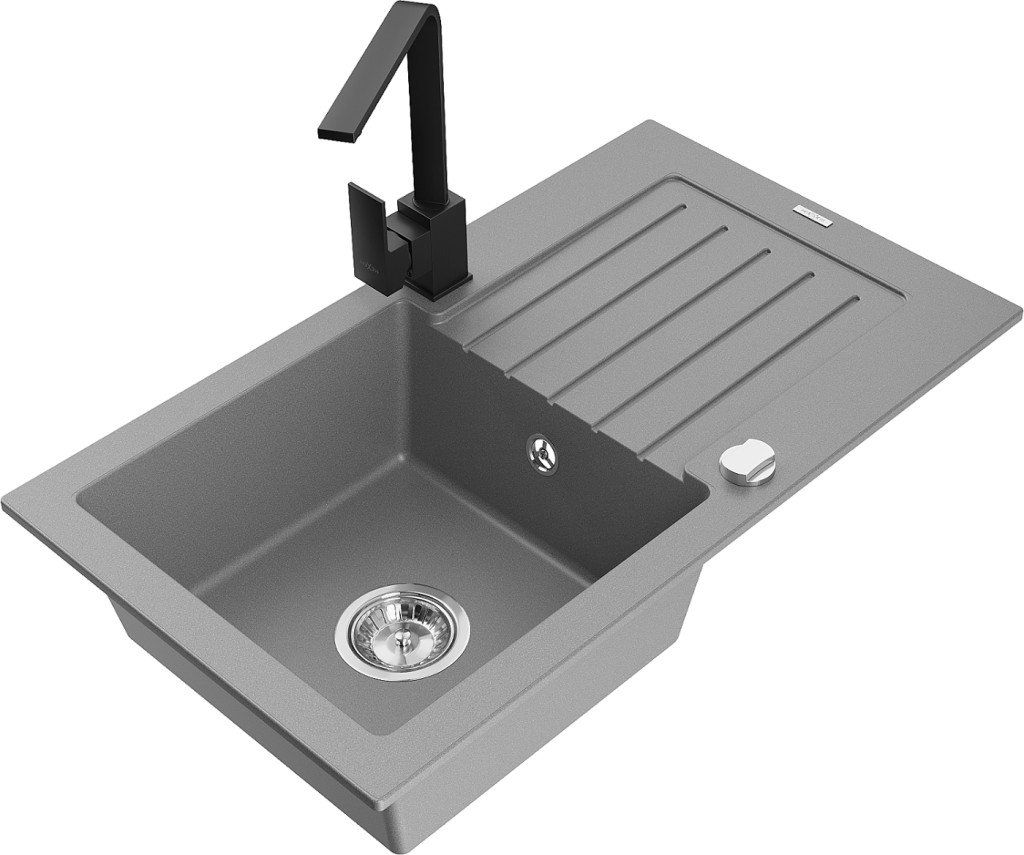 Technické dáta: drez: Rozmer: 752 x 436 x 161 mm Hĺbka komory: 151 mm Rozmery komory: 356x332 mm Priemer odtoku: ø90 mm Typ: 1-miska s odkvapkávačom Typ: Zapustené do pracovnej dosky Šedá farba Povrchová úprava sifónu: Chrome Materiál: žula (80% žulové kamenivo, 20% živice) Prepadový otvor: Áno Otvory: (batérie, automatické) 2 Inštalácia: Univerzálna, je možné inštalovať s odkvapkávačom na ľavú alebo pravú stranu Vysoká odolnosť proti poškriabaniu a zmene farby Odolnosť proti tepelným šokom Ľahko čistiteľný povrch Dva dodatočné vyfrézované otvory na samodierovanie ø35 kuchynská batéria: Materiál: mosadz Čierna farba Hlava: Keramická Prevzdušňovač: Áno Typ: Jedna páka Výška batérie: 290 mm Rozsah výtoku: 220 mm(GT) Ean: 5905315019233