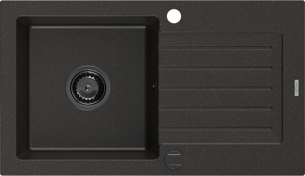 Technické dáta: Rozmer: 752 x 436 x 161 mm Hĺbka komory: 151 mm Rozmery komory: 356x332 mm Priemer odtoku: ø90 mm Typ: 1-miska s odkvapkávačom Typ: Zapustené do pracovnej dosky Materiál: žula Farba: čierna / zlatá metalíza Povrchová úprava sifónu: čierna Prepadový otvor: Áno Otvor pre batériu: Áno Vrátane automatického sifónu Vysoká odolnosť proti poškriabaniu a zmene farby Odolnosť proti tepelným šokom Ľahko čistiteľný povrch Dva dodatočné vyfrézované otvory na samodierovanie ø35(GT) Ean: 5905315013132