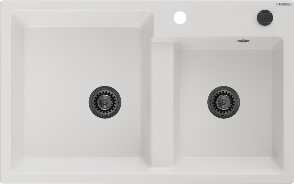 Technické dáta: Rozmer: 800 x 500 x 190 mm Hĺbka komory: 180 mm (väčšia), 180 mm (menšia) Rozmery komory: 440x387 mm (väčšie), 370x303 mm (menšie) Priemer odtoku: ø90 mm Typ: 2-komorový Typ: Zapustené do pracovnej dosky Materiál: žula biela farba Povrchová úprava sifónu: čierna Prepadový otvor: Áno Otvor pre batériu: Áno Vrátane automatického sifónu Vysoká odolnosť proti poškriabaniu a zmene farby Odolnosť proti tepelným šokom Ľahko čistiteľný povrch(GT) Ean: 5905315013514