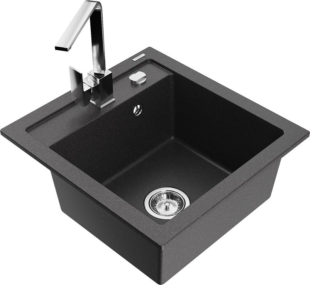 Technické dáta: drez: Rozmer: 520 x 490 x 210 mm Hĺbka komory: 200 mm Rozmery komory: 410x360 mm Priemer odtoku: ø90 mm Typ: 1-komorový Typ: Zapustené do pracovnej dosky Farba: Škvrnitá čierna Povrchová úprava sifónu: Chrome Materiál: žula (80% žulové kamenivo, 20% živice) Prepadový otvor: Áno Otvory: (batérie, automatické) 2 Vysoká odolnosť proti poškriabaniu a zmene farby Odolnosť proti tepelným šokom Ľahko čistiteľný povrch Jeden dodatočný vyfrézovaný otvor na samodierovanie ø35 kuchynská batéria: Materiál: mosadz Farba: Chrome Hlava: Keramická Prevzdušňovač: Áno Typ: Jedna páka Výška batérie: 290 mm Rozsah výtoku: 220 mm(GT) Ean: 5905315017758