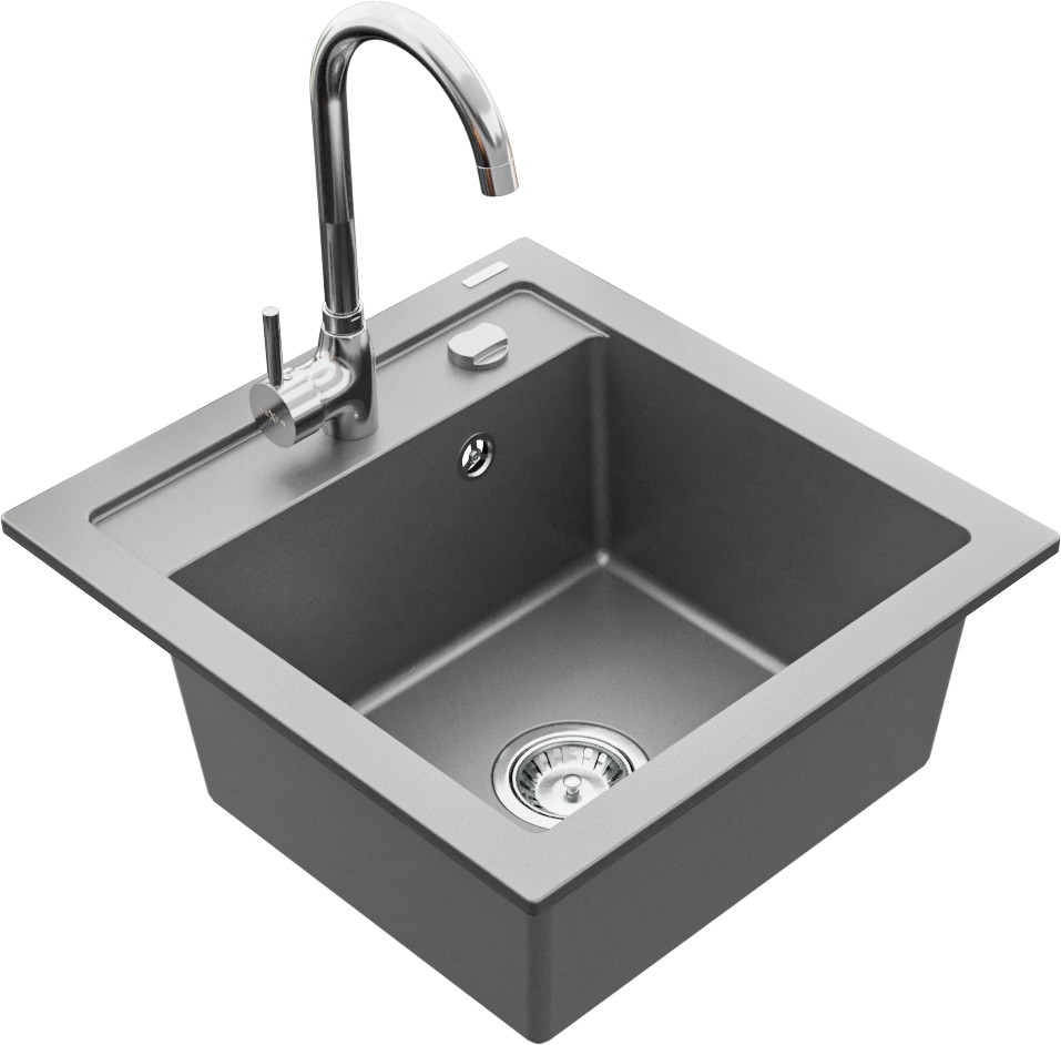 Technické dáta: drez: Rozmer: 520 x 490 x 210 mm Hĺbka komory: 200 mm Rozmery komory: 410x360 mm Priemer odtoku: ø90 mm Typ: 1-komorový Typ: Zapustené do pracovnej dosky Šedá farba Povrchová úprava sifónu: Chrome Materiál: žula (80% žulové kamenivo, 20% živice) Prepadový otvor: Áno Otvory: (batérie, automatické) 2 Vysoká odolnosť proti poškriabaniu a zmene farby Odolnosť proti tepelným šokom Ľahko čistiteľný povrch Jeden dodatočný vyfrézovaný otvor na samodierovanie ø35 kuchynská batéria: Materiál: mosadz Farba: Chrome Hlava: Keramická Prevzdušňovač: Áno Výška batérie: 335 mm Rozsah výtoku: 180 mm(GT) Ean: 5907709189294