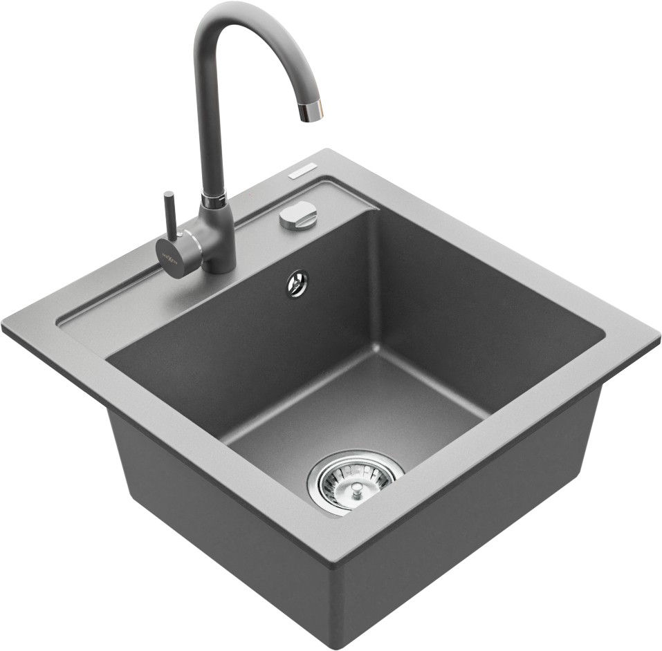 Technické dáta: drez: Rozmer: 520 x 490 x 210 mm Hĺbka komory: 200 mm Rozmery komory: 410x360 mm Priemer odtoku: ø90 mm Typ: 1-komorový Typ: Zapustené do pracovnej dosky Šedá farba Povrchová úprava sifónu: Chrome Materiál: žula (80% žulové kamenivo, 20% živice) Prepadový otvor: Áno Otvory: (batérie, automatické) 2 Vysoká odolnosť proti poškriabaniu a zmene farby Odolnosť proti tepelným šokom Ľahko čistiteľný povrch Jeden dodatočný vyfrézovaný otvor na samodierovanie ø35 kuchynská batéria: Materiál: mosadz Šedá farba Hlava: Keramická Prevzdušňovač: Áno Výška batérie: 335 mm Rozsah výtoku: 180 mm(GT) Ean: 5907709189300