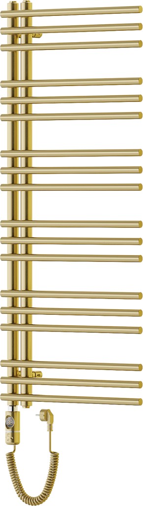 Technické dáta: Výška: 1200 mm Šírka: 500 mm Hĺbka: 66 mm Farba: Zlatá Materiál: oceľ Vykurovací výkon: 600W Počet vykurovacích tyčí: 18 Celková dĺžka ohrievača: 656 mm Dĺžka vykurovacieho telesa: 540 mm Dĺžka napájacieho kábla: 1,5m Prevádzkové napätie: 230V/50Hz Stupeň krytia: IP44 Dotykové ovládanie pomocou LED displeja Dodatočná ochrana proti chodu na sucho Vstavaný termostat udržuje požadovanú teplotu radiátora Vysoko kvalitný, odolný náter odolný voči korózii Pre správnu funkciu musí byť radiátor naplnený vodou alebo zmesou vody, napr. s glykolom Sada obsahuje: závesy, montážnu sadu a záslepky Funkcia radiátora: - Sensitive umožňuje nastaviť teplotu v rozmedzí 40 ° C-65 ° C - Comfort má možnosť sušenia, ktorá umožňuje nastaviť teplotu ohrevu na zvolenej hodinovej stupnici - Detská poistka umožňuje uzamknúť ovládač kúrenia (GT) Ean: 5905315233257