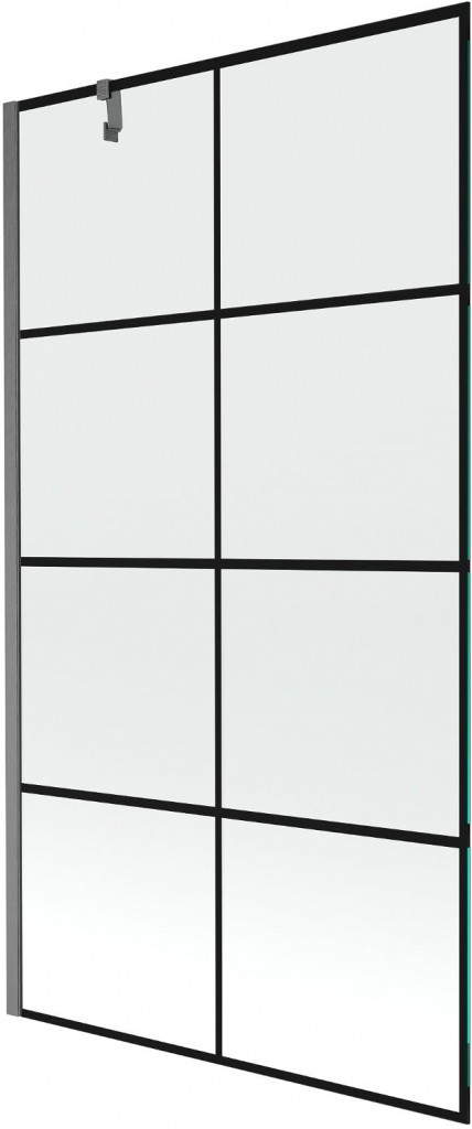 MEXEN/S - Kioto+ Sprchová zástena WALK-IN s poličkou a držiakom uterákov 100 x 200, biely vzor, grafit metal 800-100-121-95-97