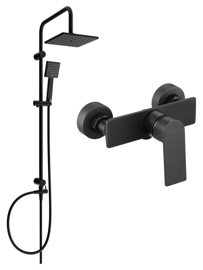 Technické dáta: Materiál stĺpika: Nerezová oceľ, ABS Povrchová úprava stĺpika: Čierna Výška: 950 mm Šírka stĺpika: 22 mm Vzdialenosť od steny: 380 mm Posuvný držiak na slúchadlo Nastaviteľné montážne držiaky Materiál dažďovej sprchy: Plast Povrchová úprava dažďovej sprchy: Čierna Veľkosť dažďovej sprchy: 200 mm Materiál slúchadiel: Plast Povrchová úprava slúchadiel: čierna Počet funkcií: 1 Pripojenie: G 1/2" Výška slúchadla: 225 mm Šírka hlavy: 105 mm Materiál hadice: Plášť z nerezovej ocele Hadie prevedenie: Čierna Dĺžka hadice: 150 cm Pripojenie: 1/2" Mosadzné hroty Pružný materiál odolný proti rozťahovaniu a ohýbaniu Materiál batérie: mosadz Hlava: Keramická Povrchová úprava: čierna (GT) Ean: 5907709181366