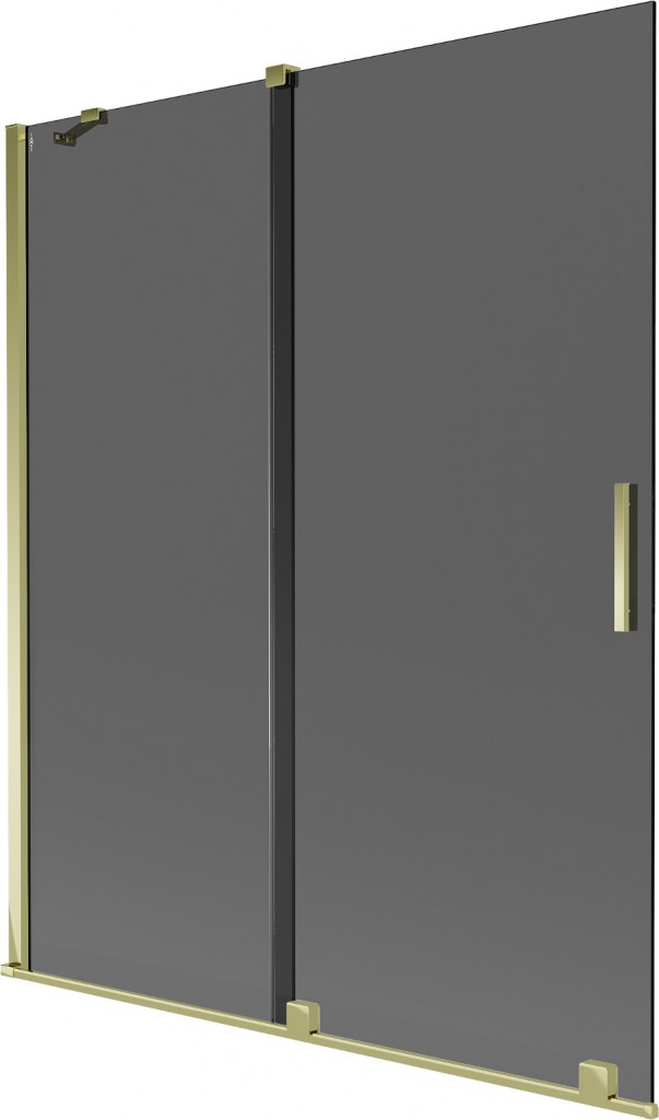 MEXEN/S - Kioto+ L Sprchová zástena WALK-IN s poličkou a držiakom uterákov 90 x 200, čierny vzor, zlatá 800-090-123-50-78