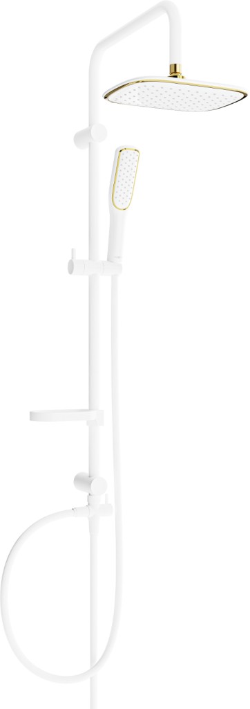 Technické dáta: Materiál stĺpa: nerezová oceľ, ABS Povrchová úprava stĺpika: Biela Výška: 950 mm Šírka stĺpika: 22 mm Vzdialenosť od steny: 400 mm Miska na mydlo Posuvný držiak slúchadlá Nastaviteľné montážne držiaky Materiál dažďovej sprchy: plast Dažďová sprcha: biela / zlatá Veľkosť dažďovej sprchy: 230 mm Materiál slúchadiel: plast Povrchová úprava slúchadiel: biela / zlatá Počet funkcií: 1 Materiál hadice: PVC Prevedenie hadica: biela Dĺžka hadice: 150 cm mosadzné hroty Hladký povrch uľahčuje udržiavanie čistoty Otočné hroty zabraňujú krúteniu Pružný materiál odolný proti roztiahnutiu a ohnutiu (GT) Ean: 5907709143081