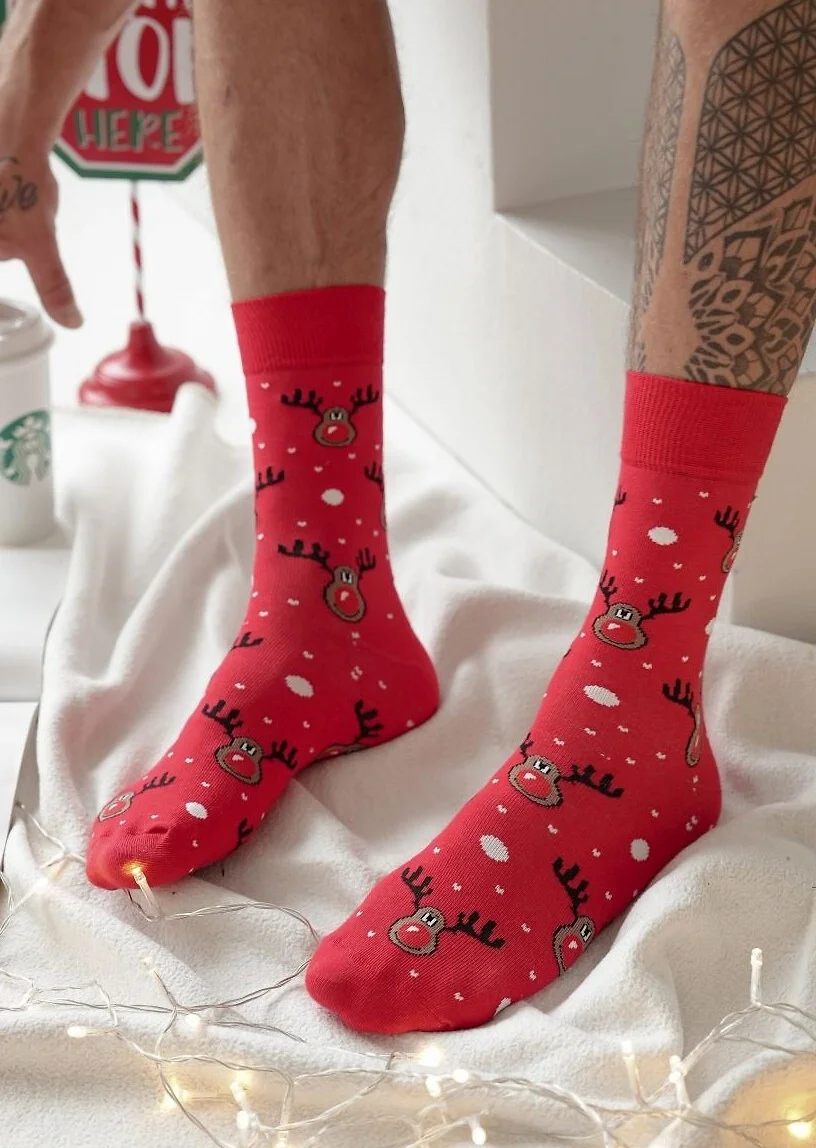 Farebné pánske ponožky - vysokokvalitná bavlna - zdobené vianočným motívom - ideálne ako darček Zloženie: 75 % bavlna, 20 % polyamid, 5 % elastan