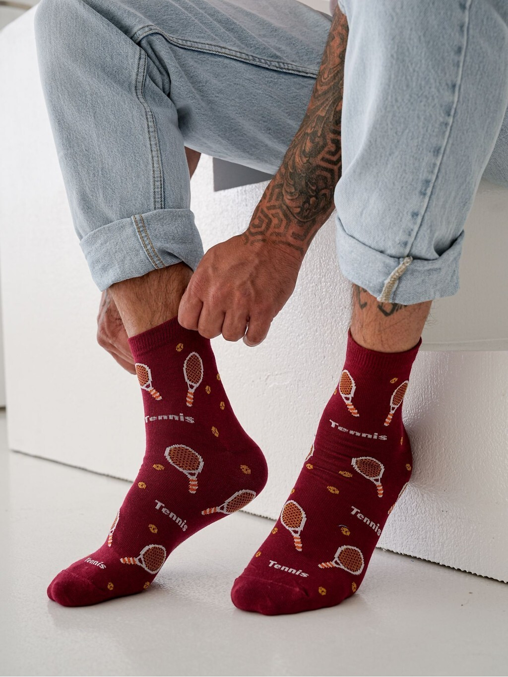Pánske ponožky - zdobené farebným vzorom tenisovej rakety - kratší zvršok - ploché švy - netlačiaci lem Zloženie: 75 % bavlna, 20 % polyamid, 5 % elastan