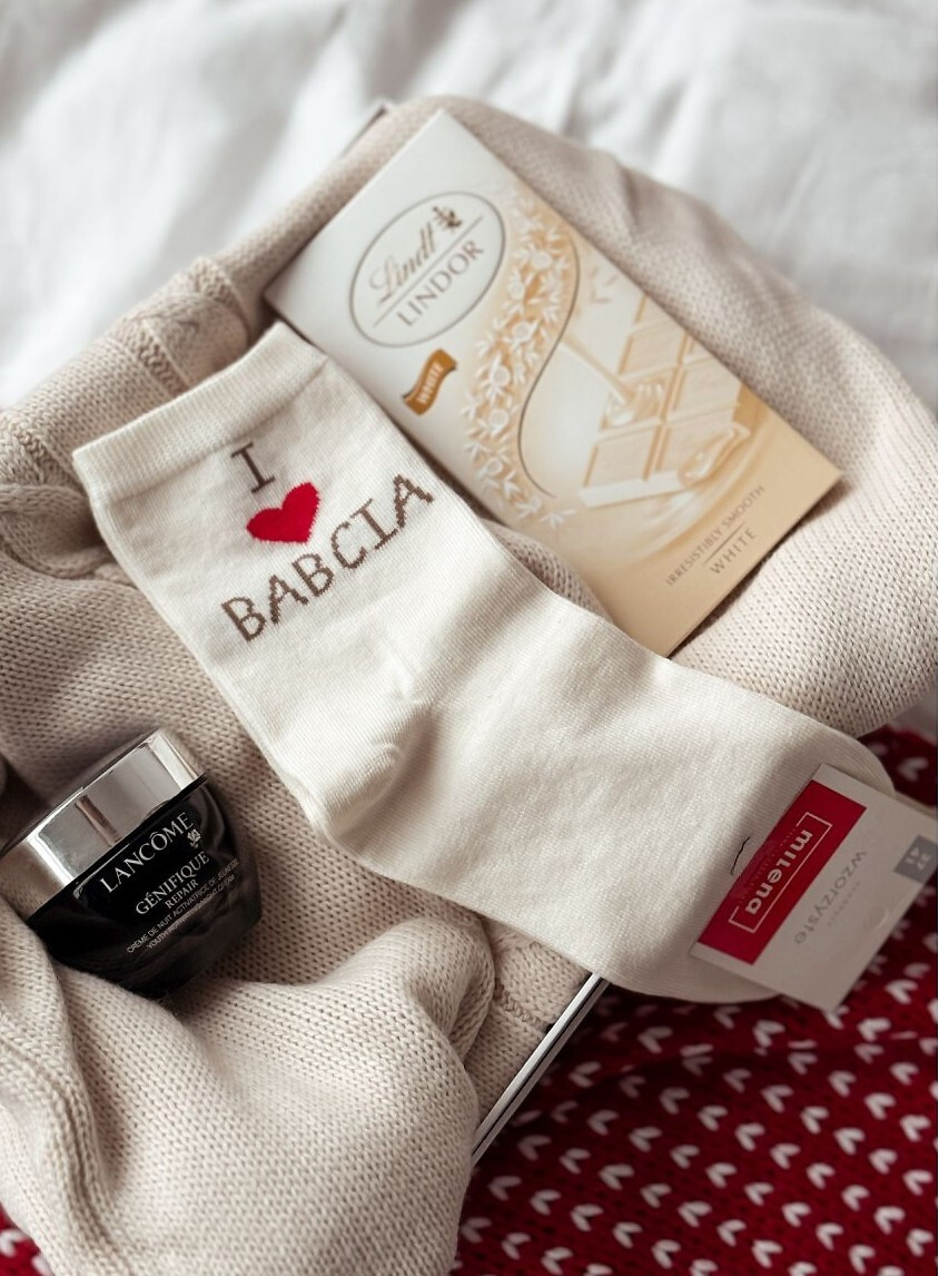 Dámske ponožky - vysokokvalitná bavlna - ozdobný nápis k príležitosti "Dňa babičky" - ploché švy - nestlačiteľný pás Zloženie: 75% bavlna, 20% polyamid, 5% elastan