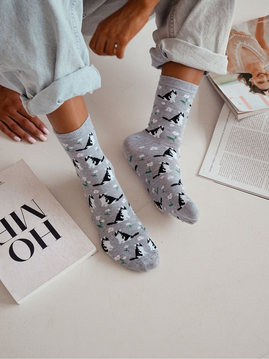 Milena ponožky 0200-173 Mačky a kvety 37-41 lehká melanž 37-41