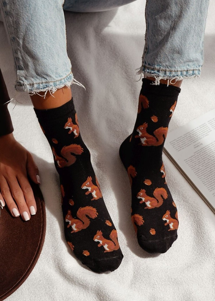 Milena ponožky 0200-185 Veverička a orechy 37-41 černá 37-41