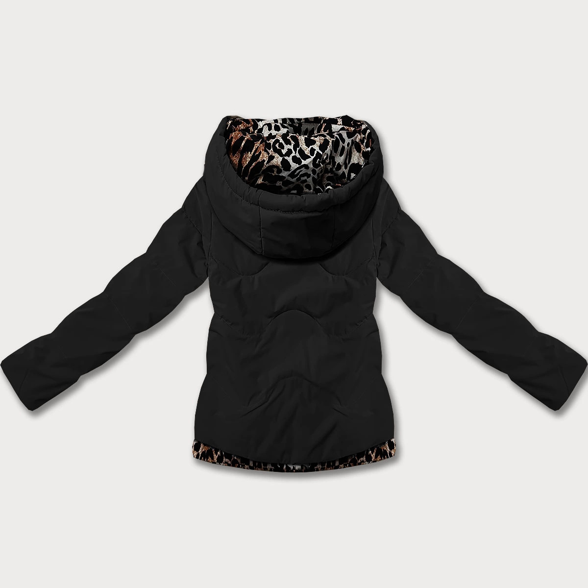 Miss TiTi (25898) Čierna dámska krátka bunda s motívom pantera odstíny černé XL (42)