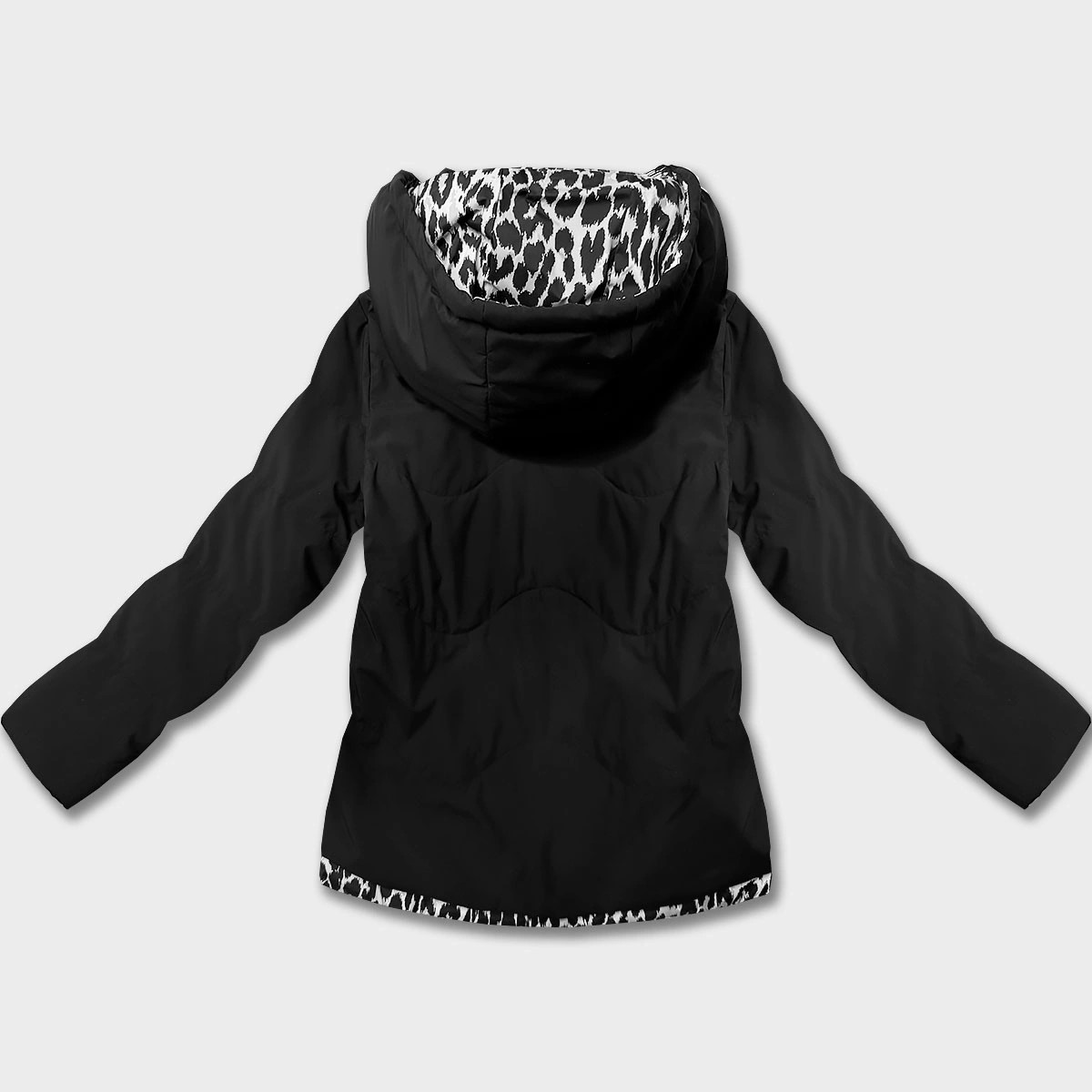 Miss TiTi (25899) Čierna dámska krátka bunda s motívom pantera odstíny černé 48