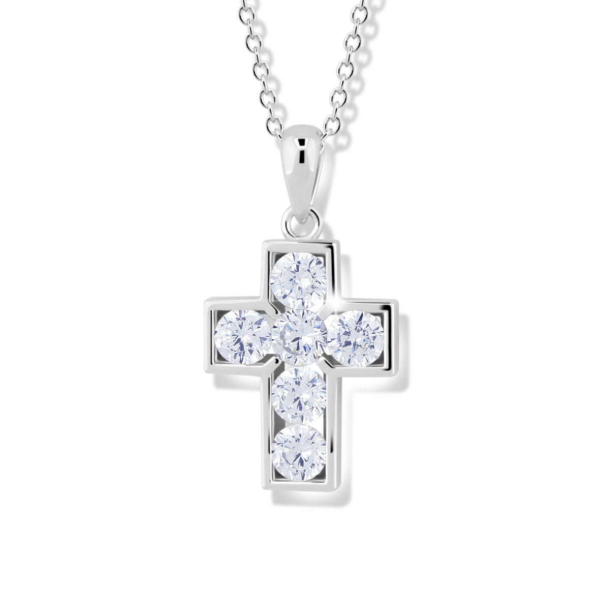 Modesi Slušivý náhrdelník s kubickými zirkónmi Krížik M00841 (retiazka, prívesok)