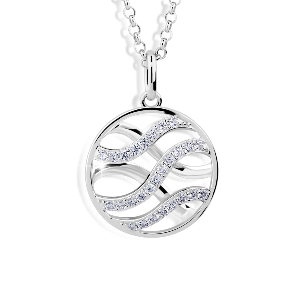Modesi Slušivý strieborný náhrdelník J305CZ-W (retiazka, prívesok)