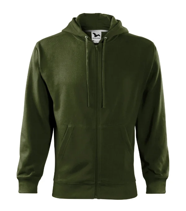 rovný strih s bočnými švami kapucňa s podšívkou, sťahovacia šnúrka vo výstrihu s kontrastnou páskou nakladané klokanie vrecká spodný lem a manžety rukávov z rebrového úpletu 2:2 s 5 % elastanu vnútorná strana česaná
