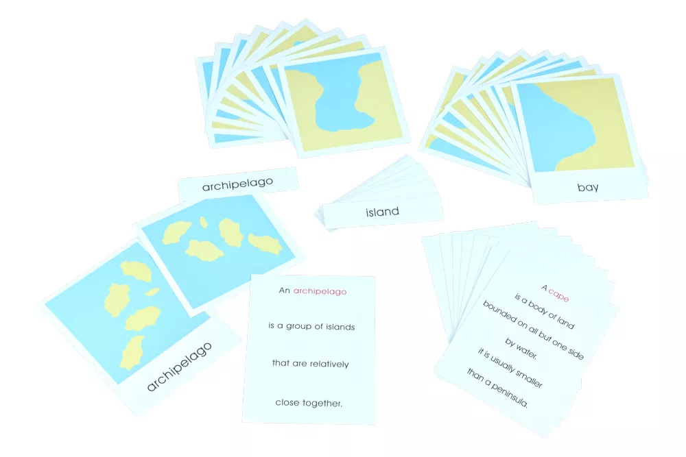 Moyo Montessori Moyo Montessori Priraďovacie karty k rôznym tvarom pevniny a vodných plôch