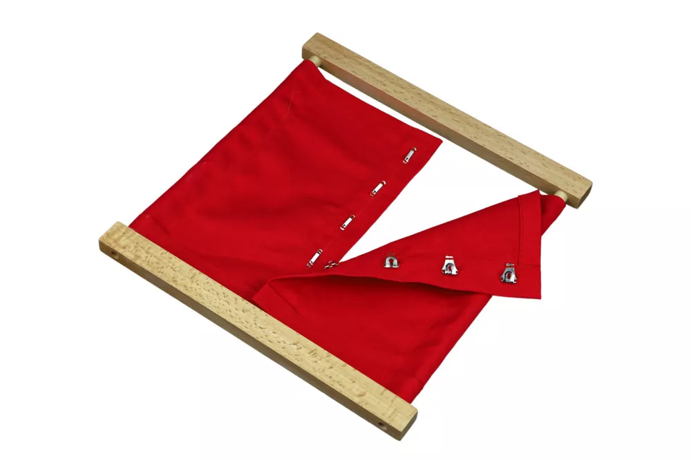 Zapínací rám – háčik a očko je pomôcka z oblasti Montessori praktického života, zameraná na nácvik starostlivosti o seba samého. Aktivita pomáha dieťaťu osvojiť si techniku zapínania a rozopínania, zlepšuje jemnú motoriku a podporuje samostatnosť pri obliekaní.