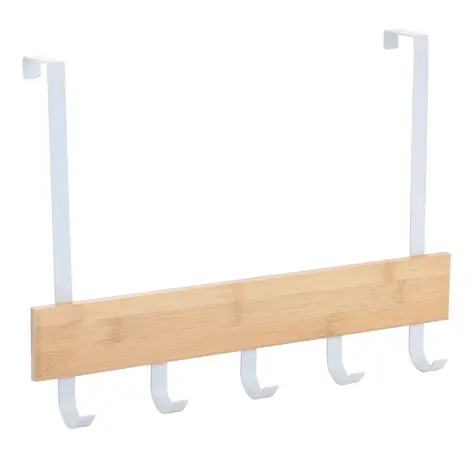 MSV ENOA závesný vešiak na dvere s 5 háčikmi biely / bambus / 47 mm